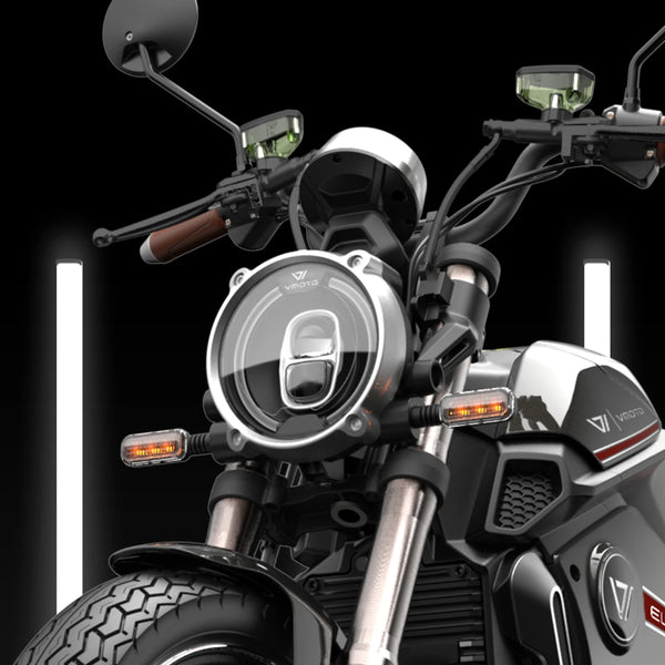 Le VMoto TC reprend les codes authentiques des café-racers : lignes épurées, finitions chromées et palette vintage, tout en intégrant une technologie 100 % électrique moderne.